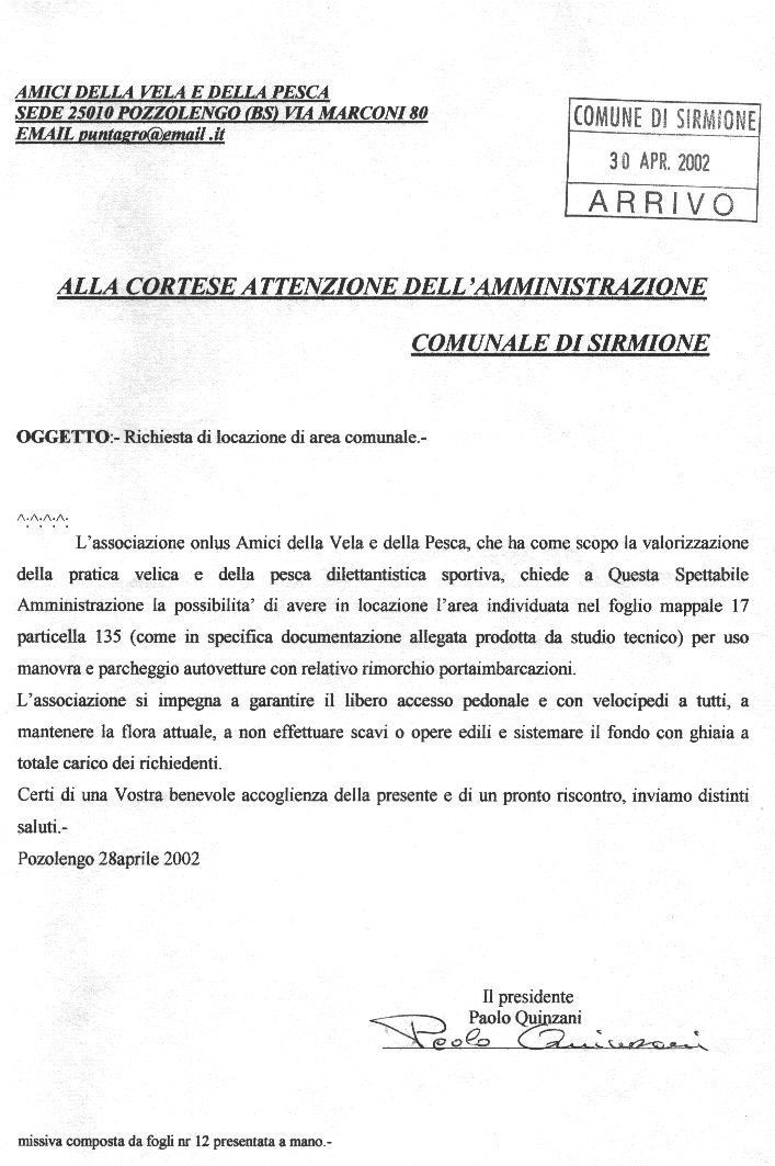 Infine abbiamo depositato presso il Comune di Sirmione domanda di avere l'area in affitto (a canone demaniale) come da immagine seguente.